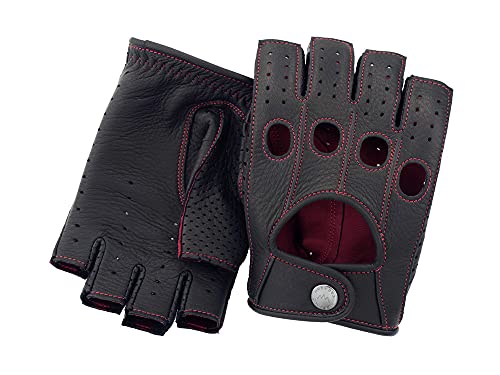 CACAZAN ドライビンググローブ ハーフフィンガー DDR-070 (ブラック/レッドステッチ, L)