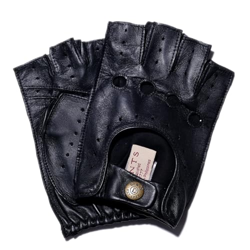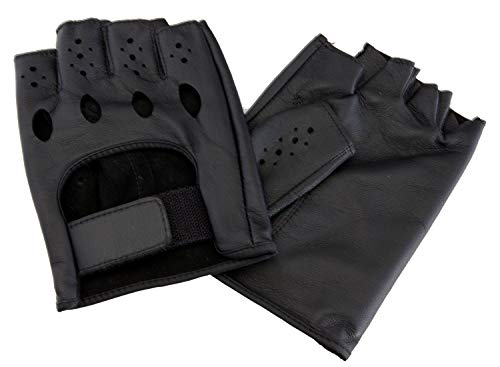 [GSG] ドライビンググローブ 半指 指なし革 レザー 手袋 メンズ バイク グローブ 指ぬき ロック 運転 ドライブ ドライバー 肉厚パッド 男性 紳士 プレゼントにお勧め ブラック M 161078
