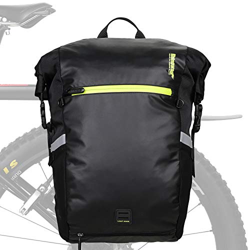 Rhinowalk 自転車パニアバッグ 防水 サイドバッグ 24L大容量 撥水 サイクリングバッグ リュックサック キャンプ ツーリングバッグ アウトドア用 取り付け簡単 (Black)