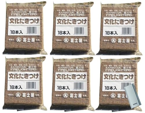 文化たきつけ 富士屋 18本入 6個セット 木炭・練炭・豆炭・石炭・オガ炭・薪用簡単着火剤・屋外用 オリジナル付箋付き