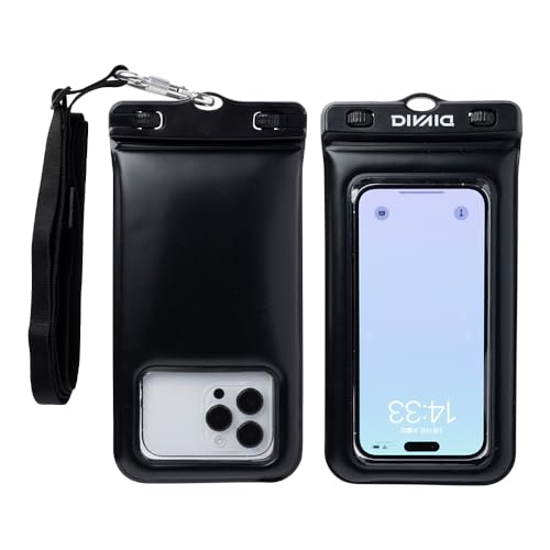 DIVAID ワイドサイズ 防水ケース スマホ用 IP68 ショルダーストラップ付き (ブラック)【水に浮く フローティング iPhone Android 各種スマートフォン対応 防水 防塵】