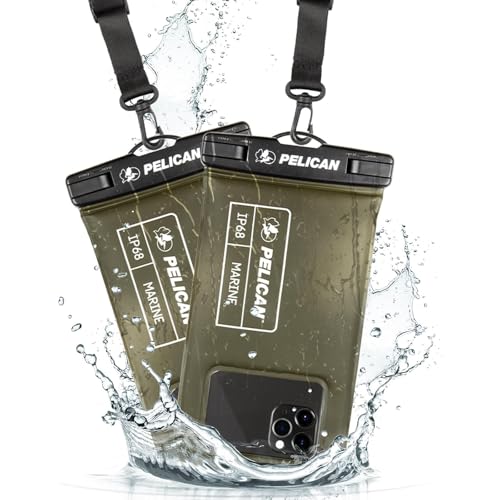 【Pelican】 IP68 (防塵防水規格最高等級) ペリカン スマホ 防水ポーチ 防水ケース ノーマルサイズ 2個セット 〔最大 6.7 インチ スマートフォン対応〕 Marine Waterproof Floating Pouch – Olive Green/Black PP043304-00