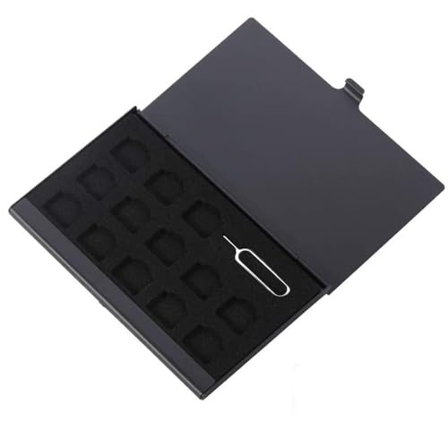 NanoSIMカード収納用アルミケース 13枚収納 取り出し リリースピン 紛失防止 持ち運び ケース 出張 海外旅行 (ブラック)