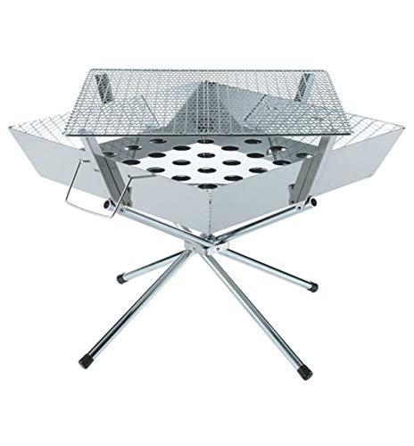【Amazon.co.jp限定】 キャプテンスタッグ(CAPTAIN STAG) バーベキューコンロ 焚火台 1台3役 折りたたみ カマド スマートグリル B6型 バッグ付 3段階調節可能 【マルチパネルセット】 シルバー UG-45