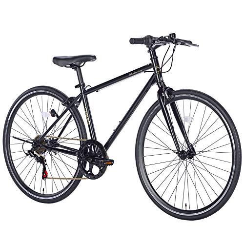 21Technology 自転車 クロスバイク CL266 マットブラック 700x28cタイヤ シマノ製6段変速ギヤ レボシフター フラットハンドルバー 前後キャリパーブレーキ