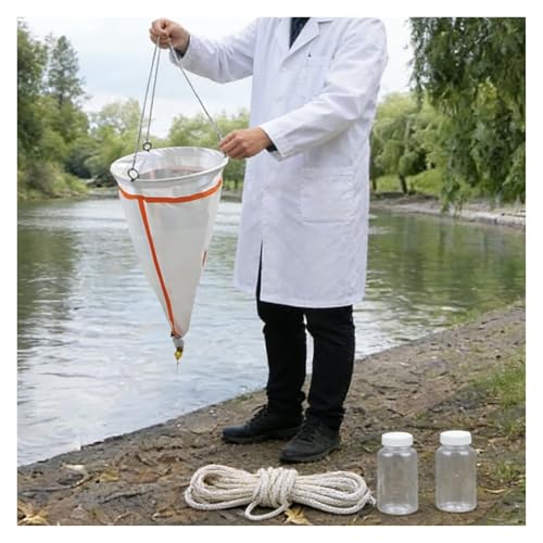 プランクトン採取ネット 600/500/400/300 メッシュプランクトンネット – 長さ 23.62 インチ、川/湖の植物プランクトンサンプリングネット、収集ボトル 2 個付き、厚みのある実験用ナイロン牽引ネット(25 Micron)