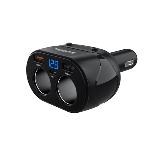 Philips (フィリップス) 3USBポート カーチャージャー 2連シガーソケット 最大120W出力 シガーソケット分配器 USB A&USB Cポート PD 20W&QC 45W急速充電 独立ボタン 車載用充電器 電圧測定 12V/24V車両対応 シガーソケットスプリッタ DLP3521N