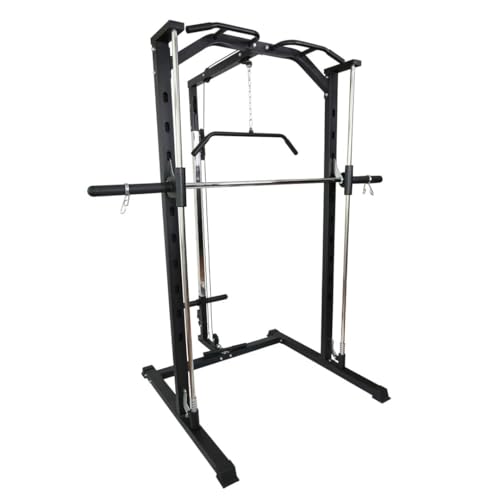 LaPaKey【多機能パワーラック】 スミスマシン ホームジム トラック スクワット ラック フレーム ウェイトリフティング ベッド ベンチプレス ベンチ バーベル セット ガントリー、ジムに適したトレーニングマシン (ブラック)