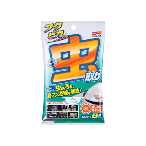 ソフト99(SOFT99) フクピカ ボディクリーナー フクピカ 虫・フン取りシート強化タイプ 自動車のボディ、ガラス、バンパー、ナンバープレートなどについた虫の死骸、鳥のフン、木の樹液などの汚れ落とし 8枚 04119