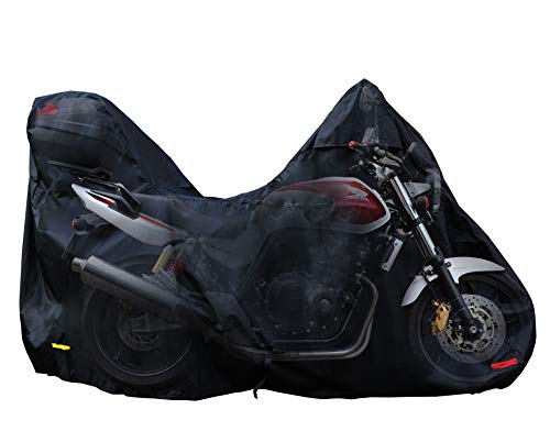 バイクカバー 420D厚手 【2025年新版&湿気対策&両側通気口】 バイク用レインカバー 車体カバー 防水 耐熱 オートバイカバー 大型 二重縫製 破れにくい 警告反射テープ5枚 盗難防止ロック穴 ワンタッチバックル前後付き 裾を絞るゴム 耐熱 紫外線防止 UVカット 防風 防埃 防雨 防雪 盗難防止 バイク用車体カバー 収納バッグ付き (2XL)