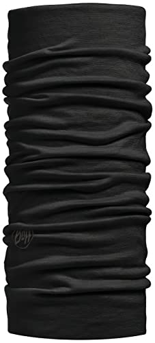 Buff (バフ) 天然メリノウール100% 柔らか肌触り スペイン製 オールシーズンOK 使い方10通り以上 マルチな万能ヘッドウェア 軽量コンパクト 抗菌対応 ネックウォーマー 汗をかいても匂わない チューブ 縫い目なし 吸汗速乾 MERINO WOOL フリーサイズ (SOLIDBLACK) [並行輸入品]