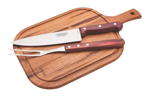 トラモンティーナ ポリウッド カービングフォーク & ナイフ & カッティングボード 3点セット バーベキューツール 食洗機対応 耐久性 天然木 切れ味 3度の熱処理加工ナイフ ブラジル製 レッド 21198/714 TRAMONTINA