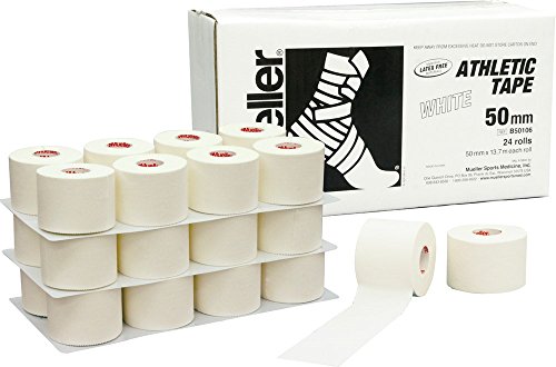ミューラー(Mueller) ホワイトテープ 非伸縮性コットンテープ ホワイトプロ アスレチックテープ 幅50mm テープ長さ13.7m お得なチームパック(24個入り) 手で切れるエッジ構造 ラテックスフリー(合成ゴム使用) 身体の幅広部位に 腰 肩関節 関節の固定 B50106