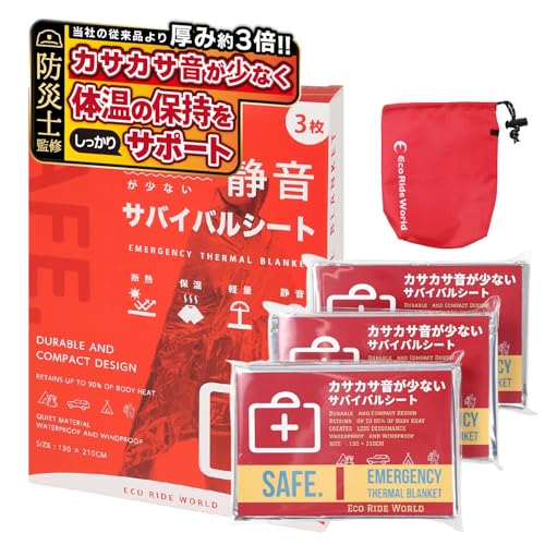 Eco Ride World アルミシート エマージェンシーシート カサカサ音が少ない 静音 ブランケット アルミブランケット サバイバルシート 備蓄 防災 保温 (3) sb_126-02